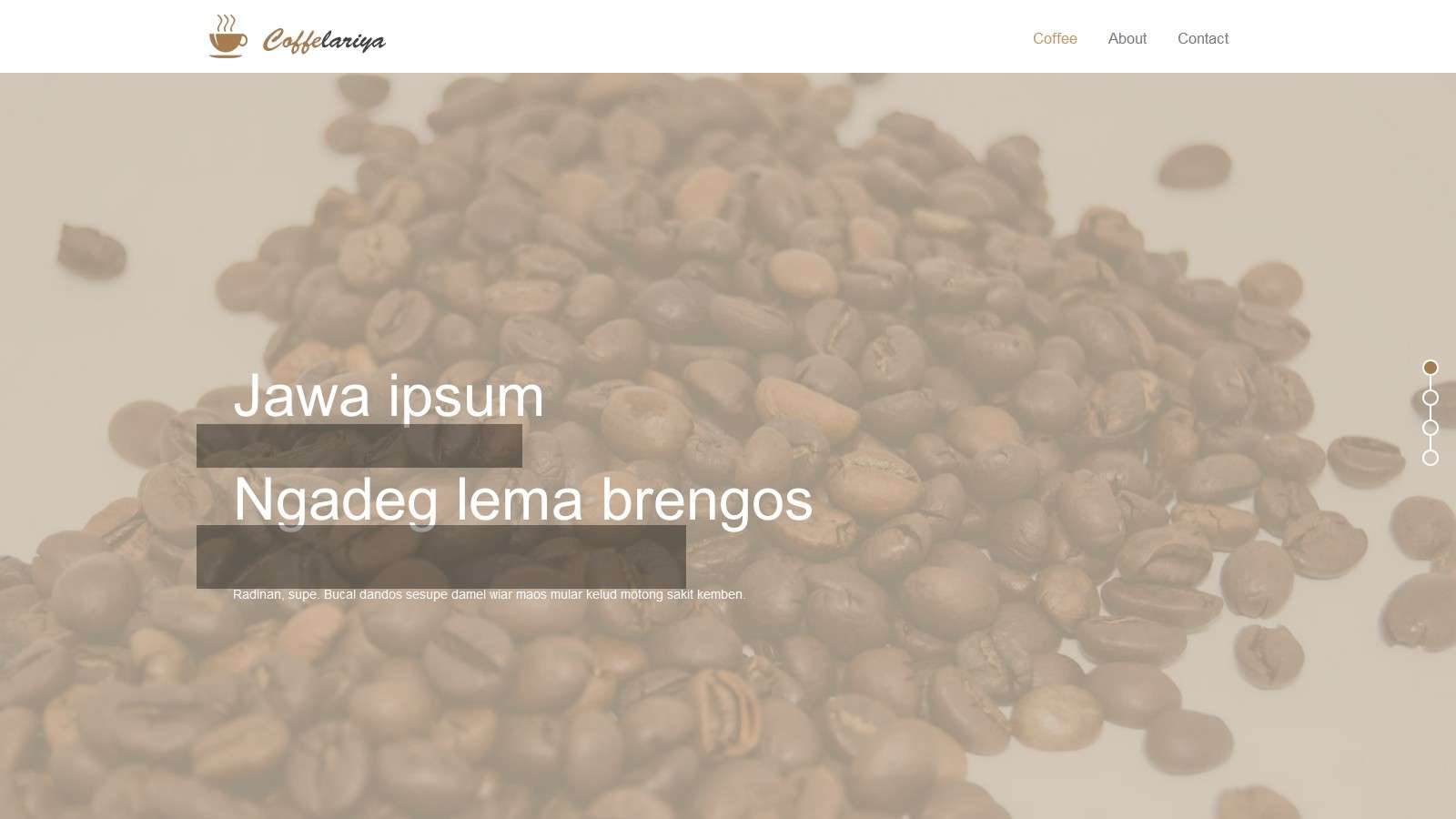 Рекламный одностраничный Bootstrap 3 шаблон для сайта, предполагается размещение общей информации о бренде, кофе для примера.
