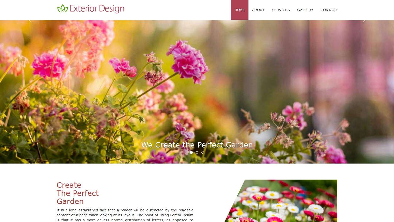 Готовый html адаптивный Bootstrap v3.3.4 шаблон для сайта с цветами, состоит из нескольких страниц со слайдером и отдельной галереей.